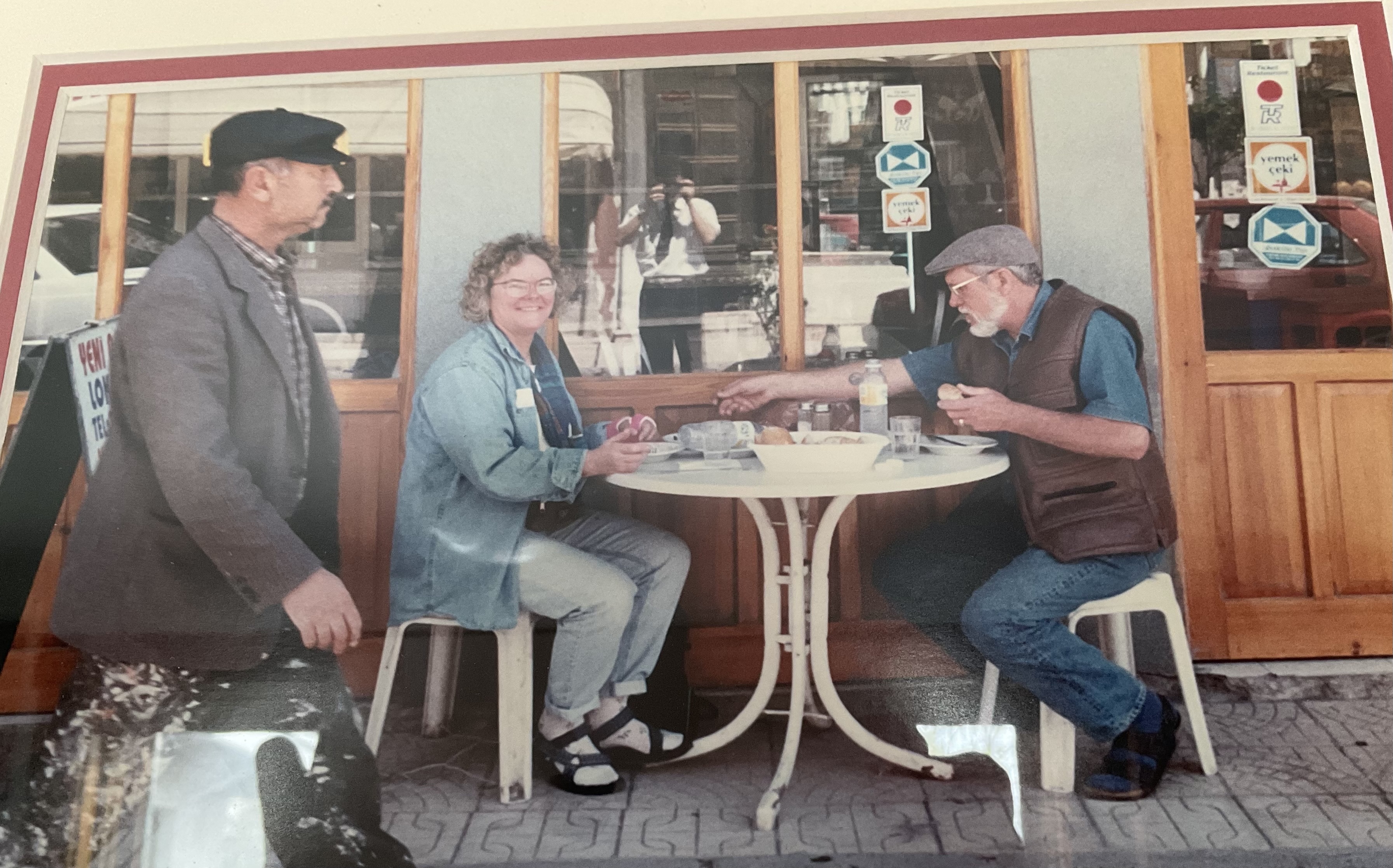 So, why is this picture an accident? When we stopped here for lunch, we asked a passerby to take a picture of us with our camera. You can see him, with a white shirt and tie, in the reflection of the window behind us. As he took our picture, another person unexpectedly stepped into the frame and became part of the picture. Our impromptu photographer immediately took another one, so that we had a similar photo without the third person entering. If this had been more recent, I would have immediately deleted this picture when I reviewed the pictures that evening. However, because it was taken with a camera, back when pictures needed to be developed to be seen, it was printed, along with all of the others.